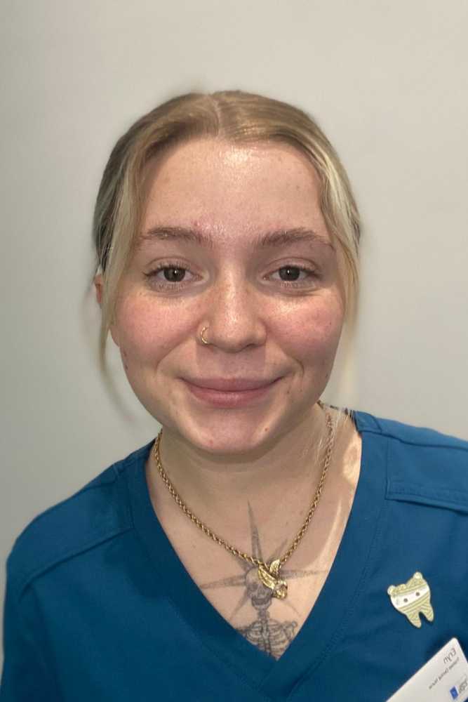 Eryn is our new trainee dental nurse, she has been with us since December 2024 where she started as our decontamination nurse. Working with us her curiosity was spiked in dentistry leading to her starting an apprenticeship in June 2025 to become part of our amazing team of dental nurses. Eryn hopes to continue her studies in dentistry and has aspirations of becoming a dental hygiene therapist.